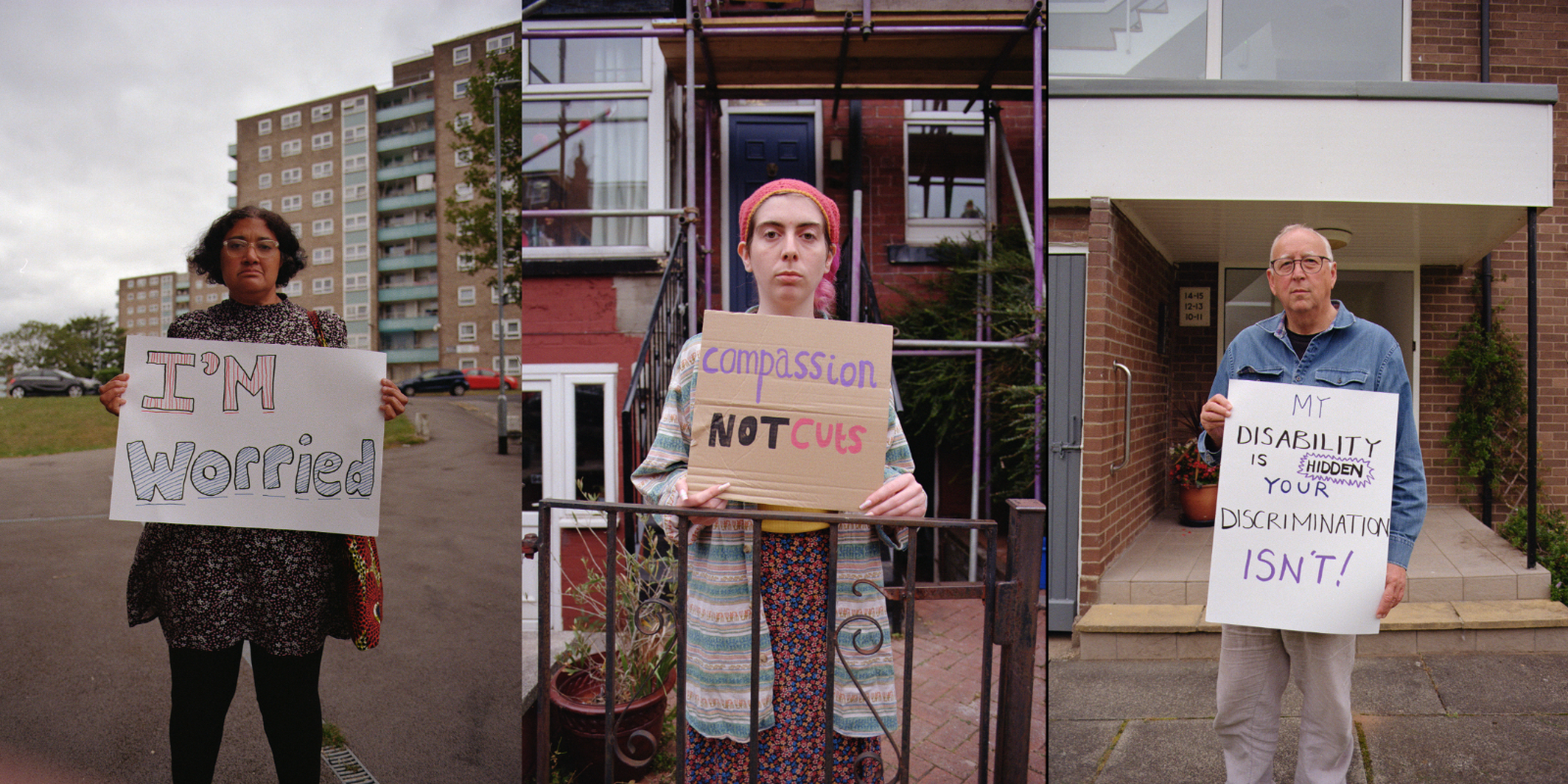 Rights Cuts Action places the work of contemporary artists in conversation with archival photography from Keith Armstrong, disabled activist, artist, and writer. The exhibition is set against a backdrop of ongoing cuts to benefits and vital support systems and the continual fight to protect disability rights.