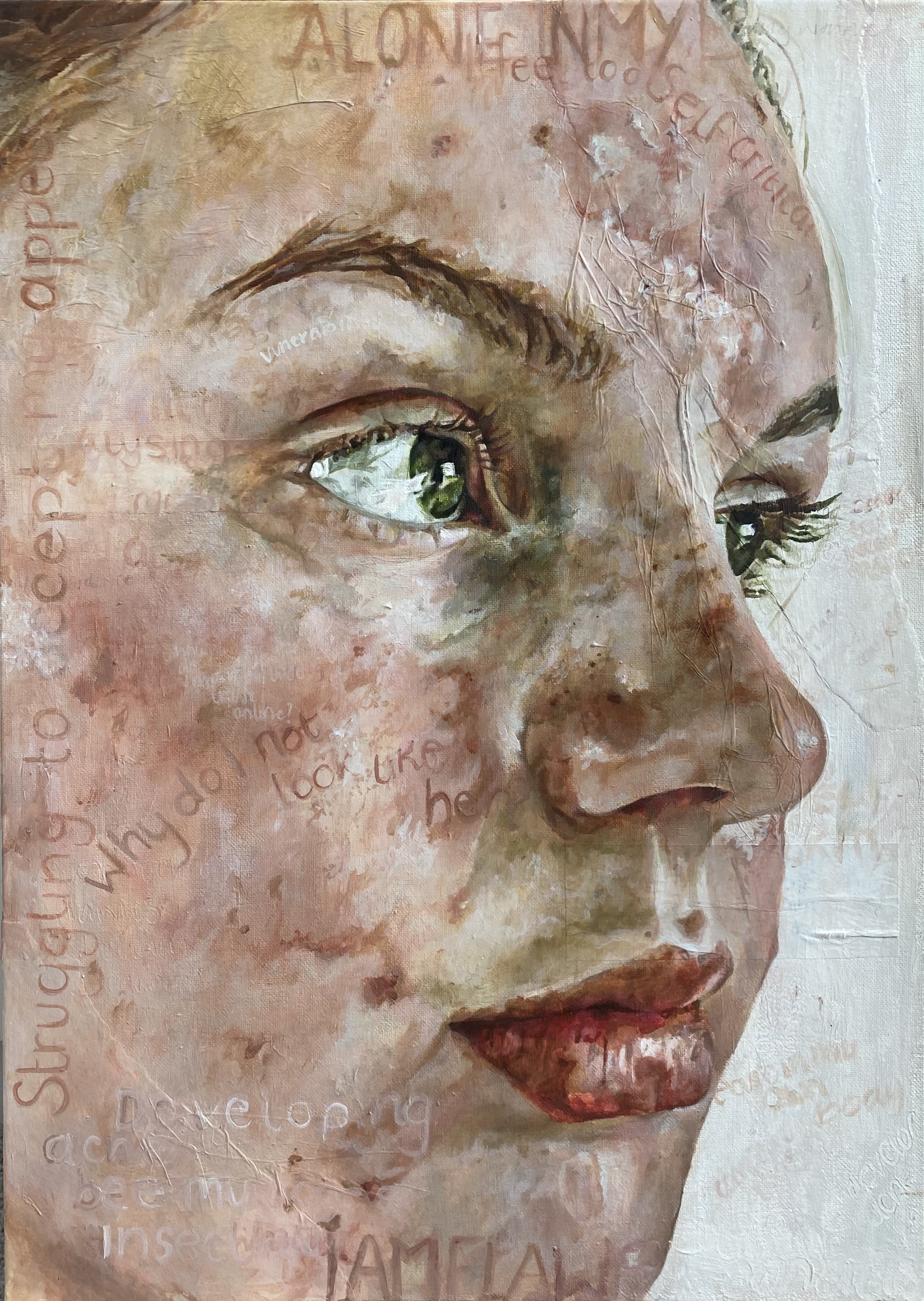 Acrylic painting on canvas - self portrait as part of ‘insecurities’ project