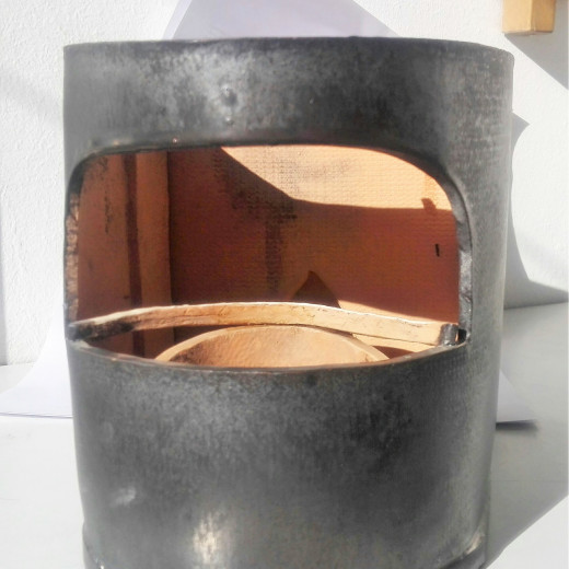ceramic pot made in a architectural lines , black on black, giving another function to Darth Vader's helmet